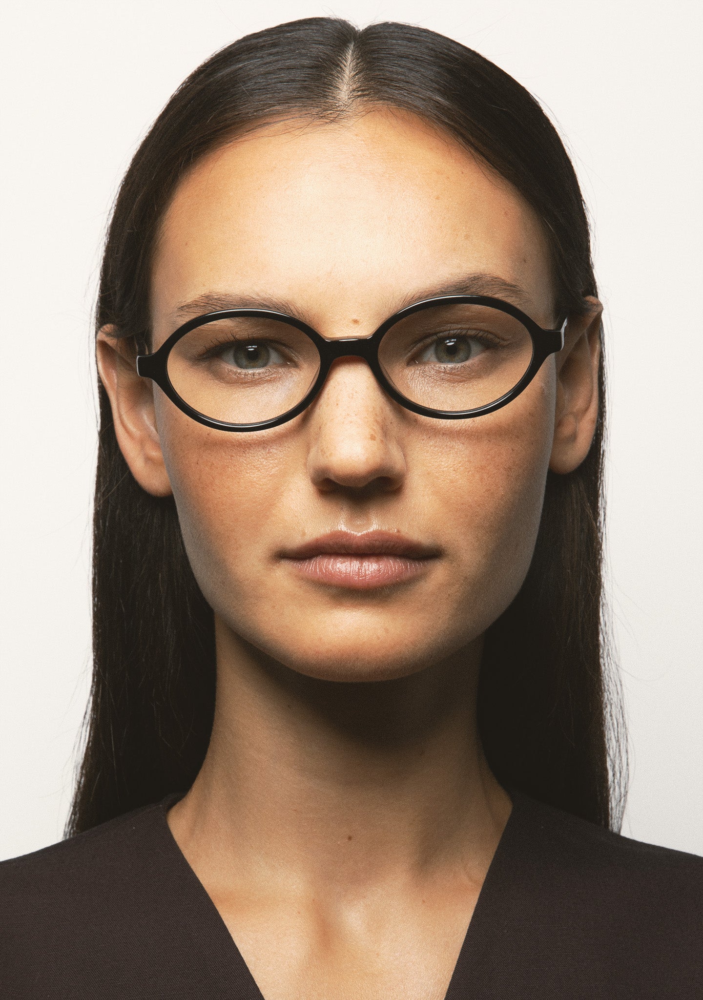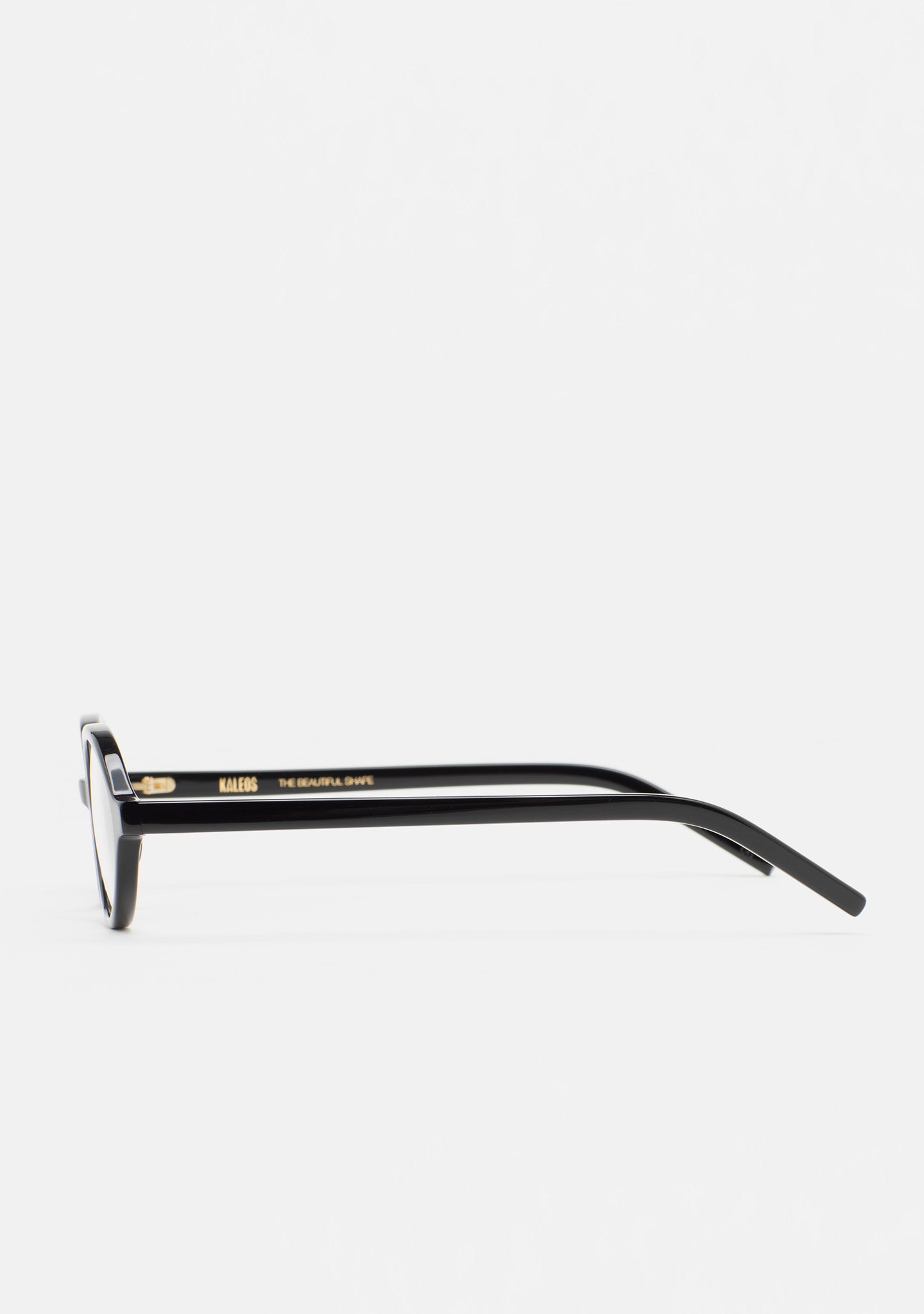 Occhiale da vista forma ovale. Frontale e aste in acetato nero. Plaquettes in acetato incorporate. Fatto a mano.