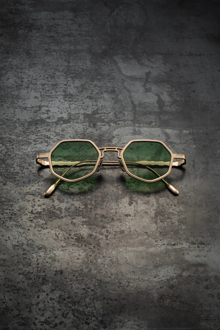Caratterizzato da linee dritte e lenti ettagonali, GURI vanta una forma geometrica che incarna un design all'avanguardia. Il doppio ponte, che ricorda le doppie barre, è un elemento distintivo, che unisce con eleganza i cerchi interni. Il ponte superiore, leggermente sporgente, accentua il profilo dinamico, infondendo alla montatura un senso di movimento e vitalità.