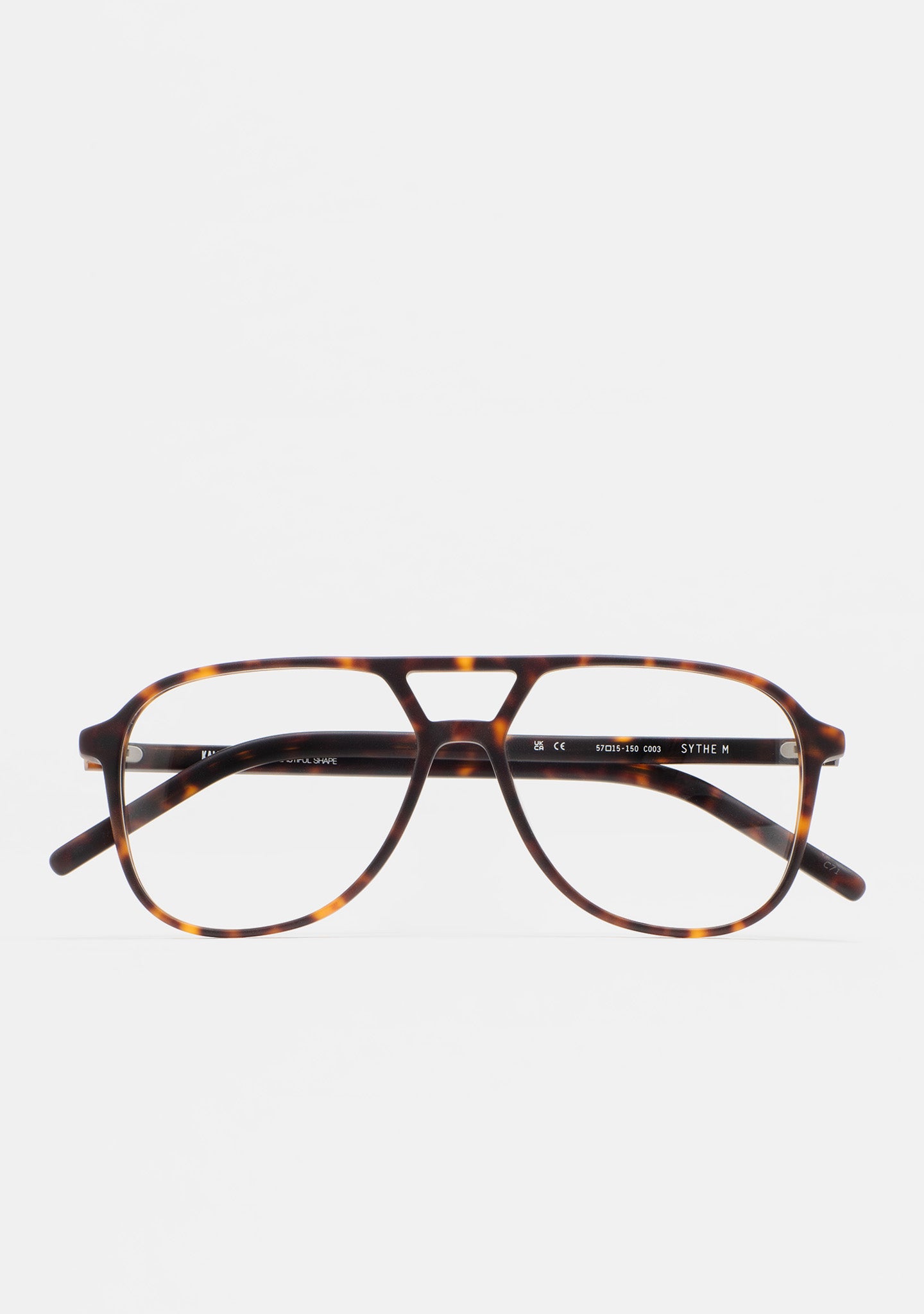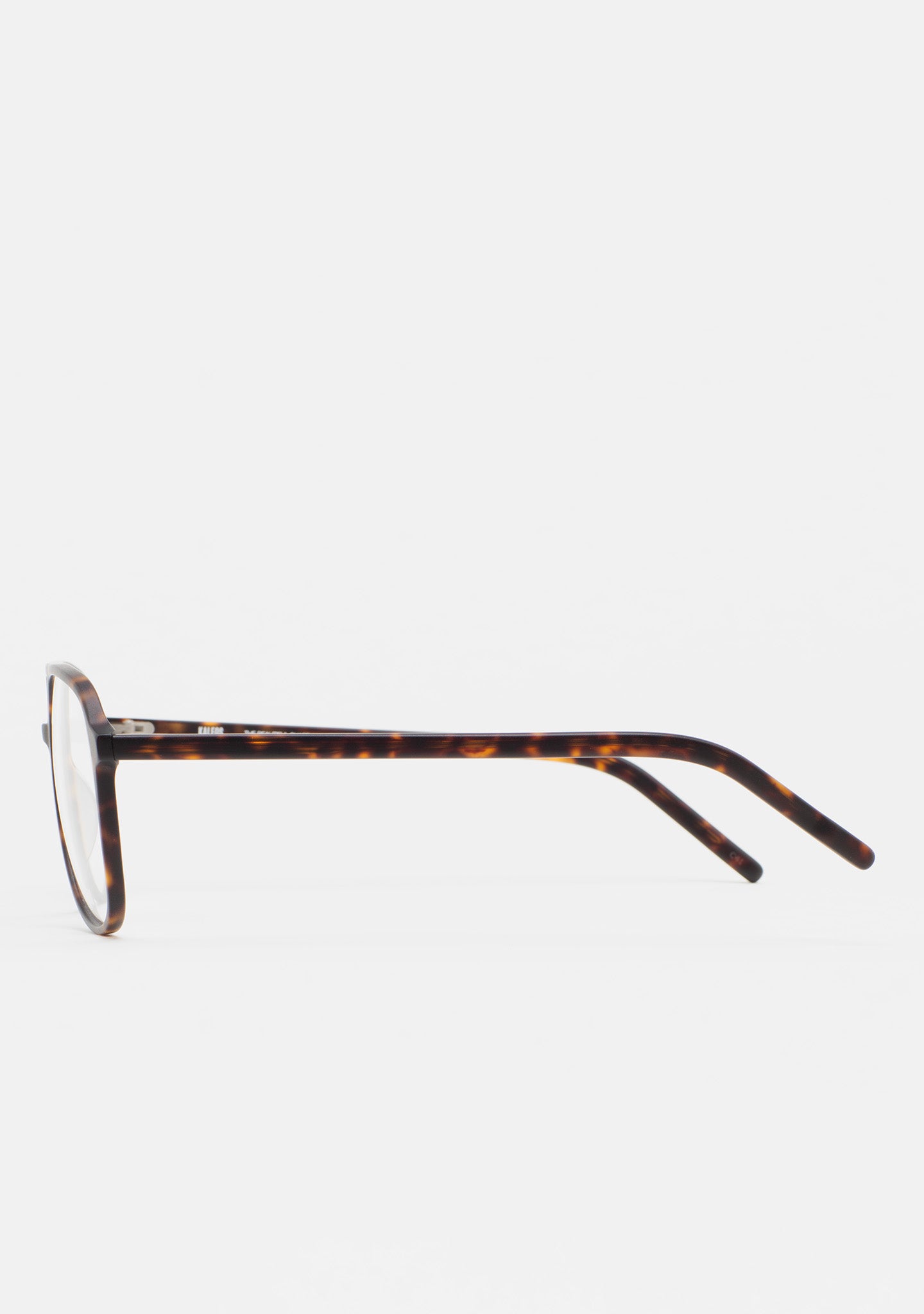 Occhiali da vista a forma aviator con doppio ponte. Frontale e aste in acetato high density havana marrone scuro opaco. Plaquettes incorporate. Fatto a mano. Occhiali disponibili in due misure: media (M) e grande (L).